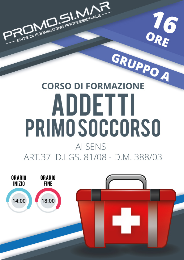 Il corso ha l’obiettivo di fornire, alle persone che in azienda rivestono il ruolo di Addetto al Primo Soccorso aziendale (in quanto nominati), una formazione specifica articolata in lezioni teoriche e pratiche, in modo da poter adempiere correttamente le funzioni previste dal ruolo ricoperto.